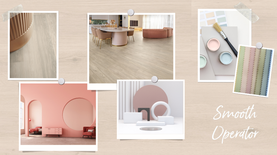 While also drawing heavily on a retro aesthetic, our next trend Smooth Operator balances the reassurance of the familiar with the current yearning for newness. Cool, calm and collected, this style layers mono-coloured and pared-back palettes over clean interior lines. Classical touches such as arches, and sinuous, sensual curves provide both visual and physical comfort. Monumental materials like stone, concrete and timber are made soft and fluid. The palette is inspired by nature – muted celery green, mellow faded parchment, dusty lotus and the luxurious blush of cashmere pinks with tonal layering creating an inviting, tactile and restorative space.
