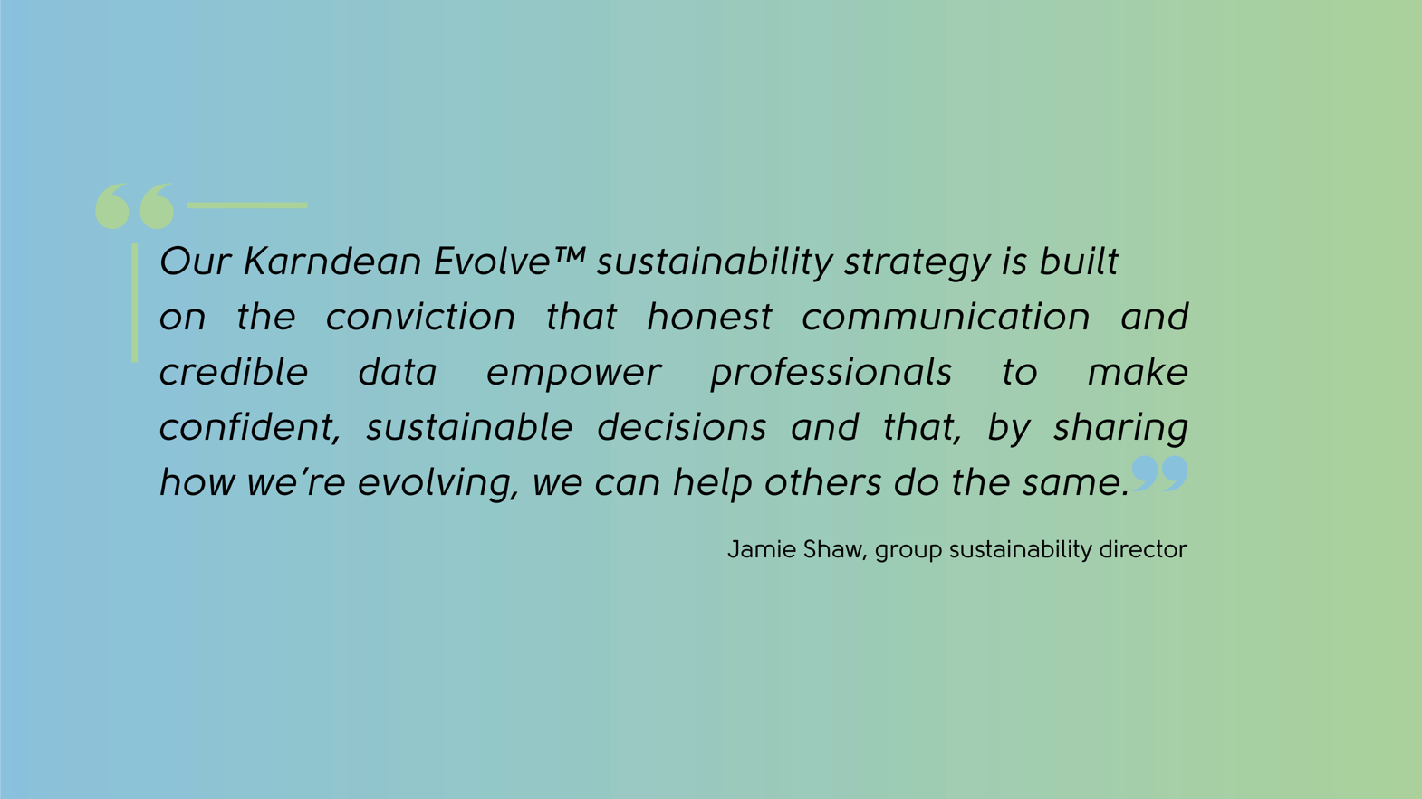 At Karndean Commercial, we believe this authenticity starts with transparency. Our Karndean Evolve™ sustainability strategy is built on the conviction that honest communication and credible data empower professionals to make confident, sustainable decisions and that, by sharing how we’re evolving, we can help others do the same.