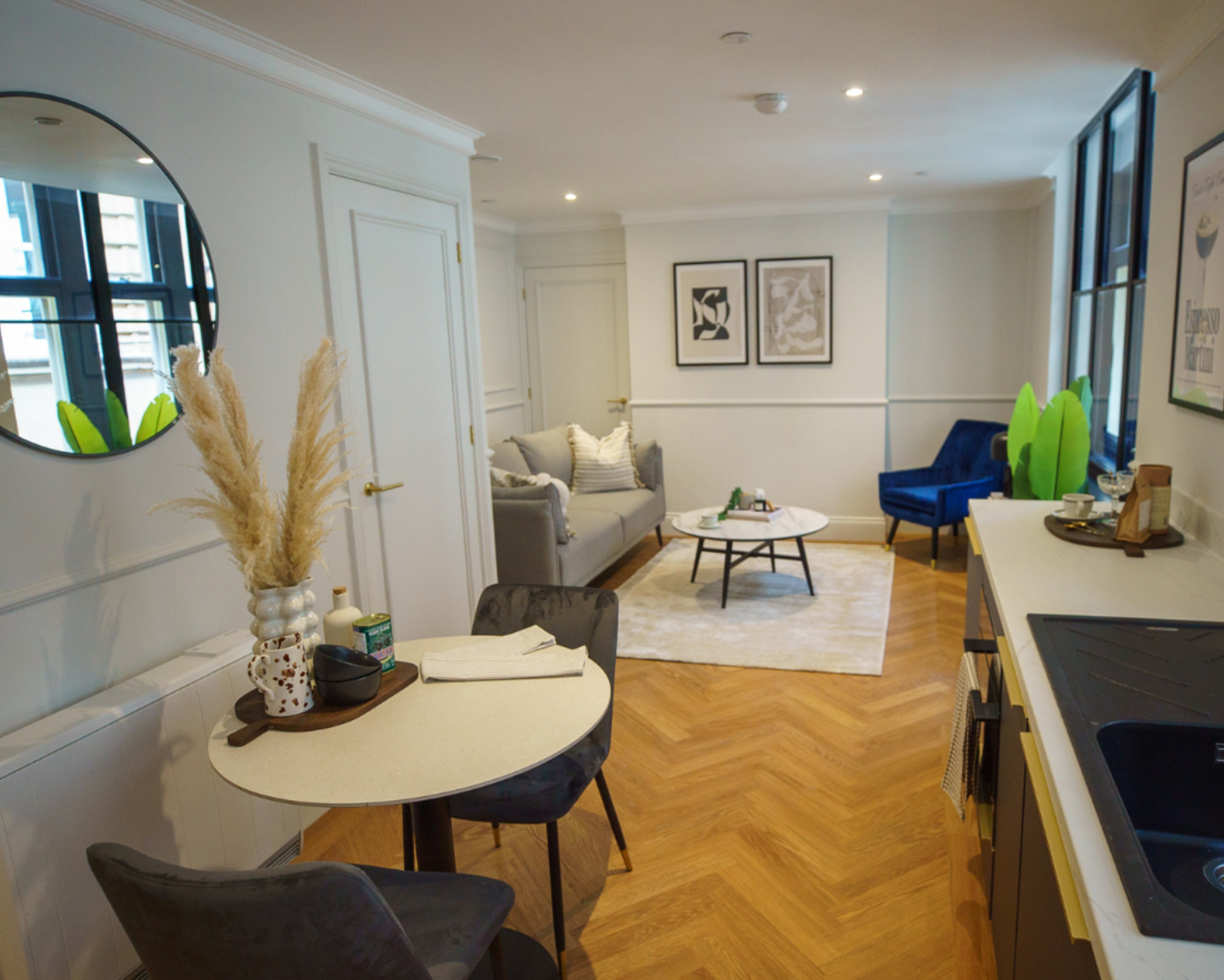 Three historic buildings in Manchester’s St Ann’s Square conservation area converted into luxury apartments.